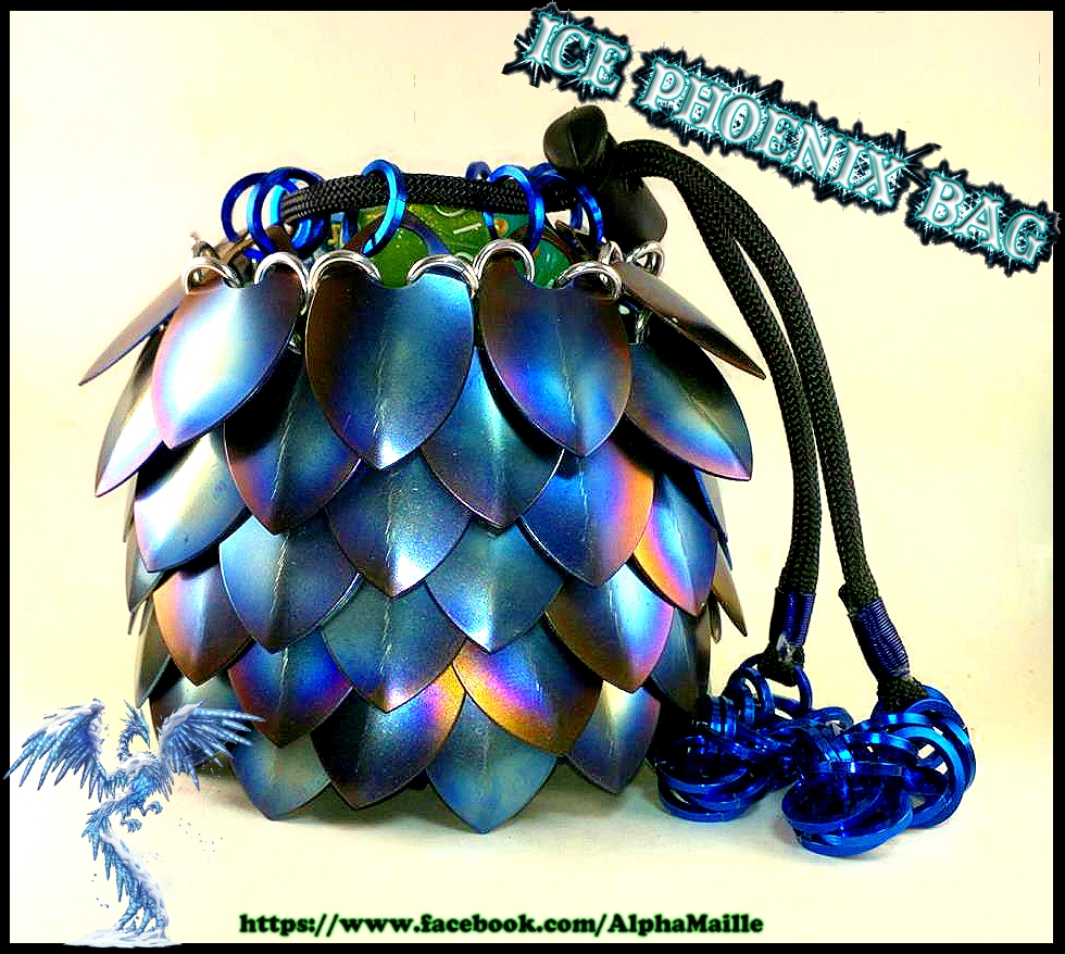 We have harnessed the flames of the mythical Ice Phoenix and each titanium scale has been flame painted by hand to give you an array of beautiful blue,green,purple and copper colored hues. Due to the randomness of the process, no two scales, or bags, will be exactly alike.